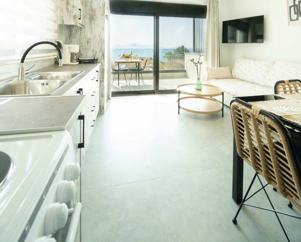 Poseidon Seafront Residence is a small collection of brand-new apartments, located right on the coast of Lefkada, Nikiana. Each apartment offers stunning sea views, pool access, and everything you need for a relaxed stay.